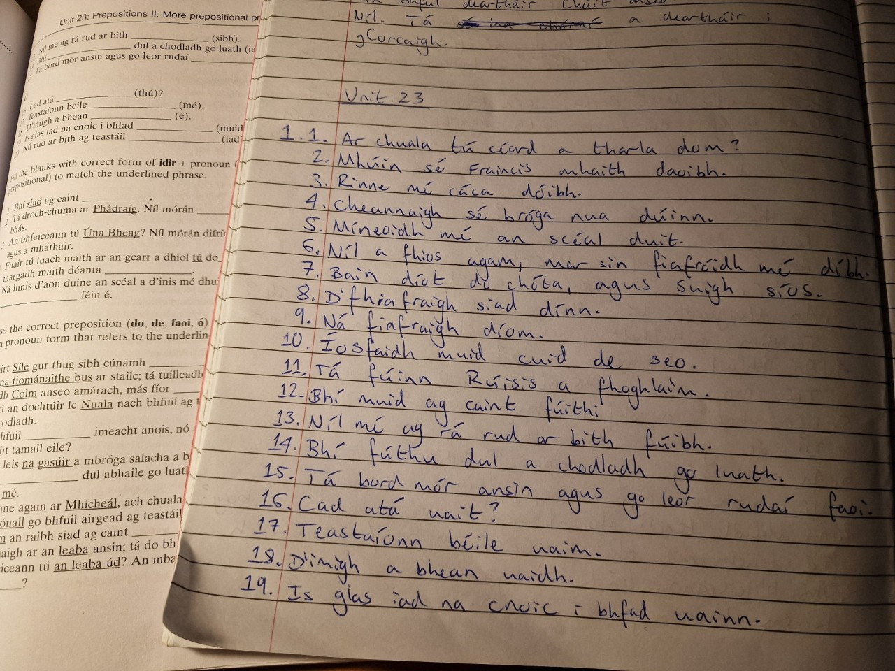 Thosaigh mé aonad 23 i "Basic Irish" faoi dheireadh!